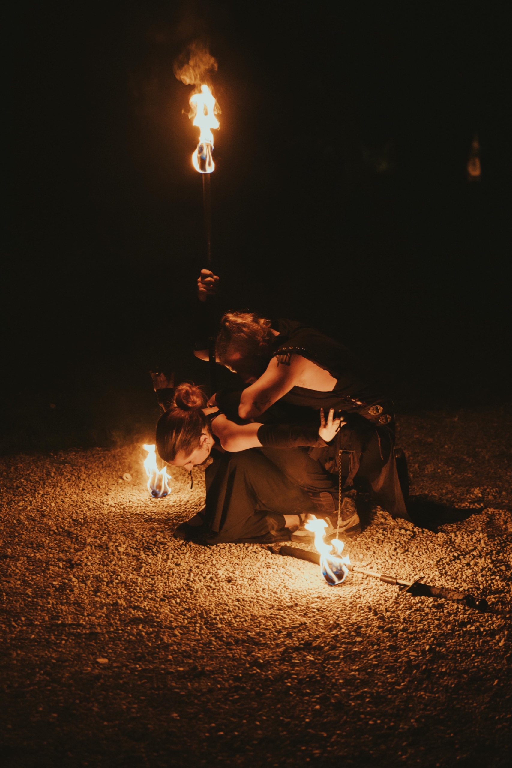 Siamo un collettivo di danzatori, acrobati e performer del fuoco e trampolieri, uniti dalla stessa visione: raccontare emozioni attraverso il corpo e la luce.