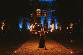 Il nostro cast artistico fonde danza contemporanea, acrobatica e arte del fuoco in performance dal forte impatto visivo e trampolieri.