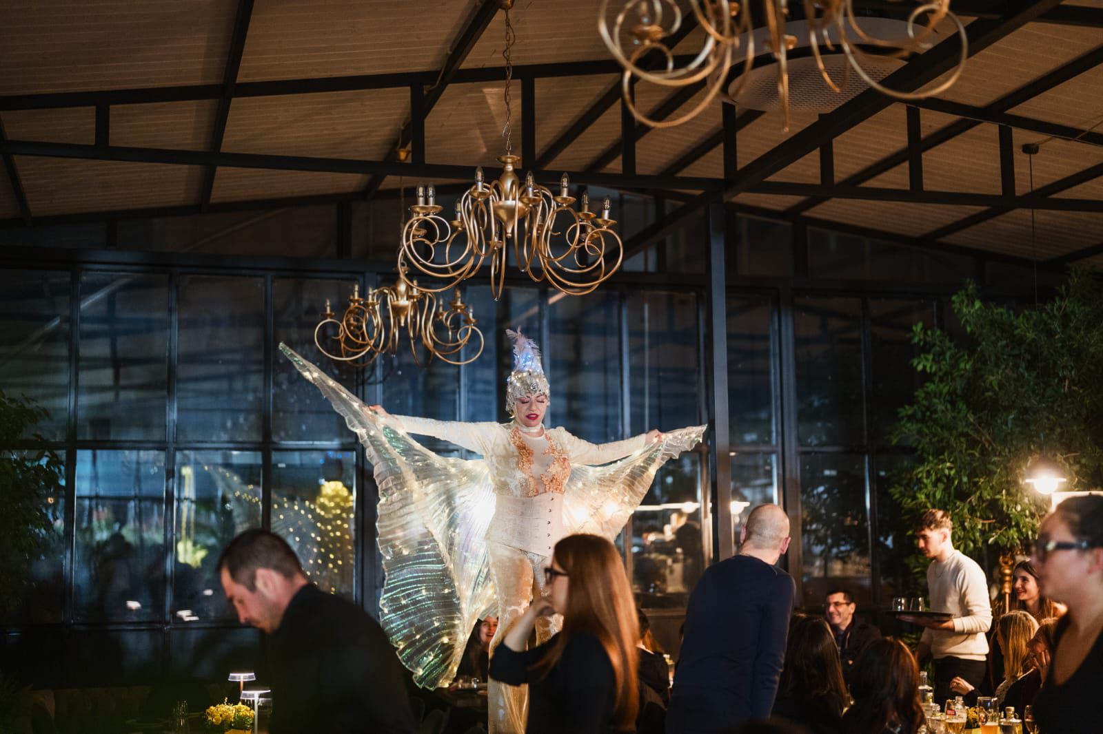 Eleganza in altezza e movimento danzano e dominano lo spazio con grazia, equilibrio e presenza scenica, trasformando ogni passo in un momento di pura meraviglia. Questo speccacolo può essere da costumi tematici e oggetti led/ fuoco su richiesta del committente. Inoltre, si propongono anche pacchetti per feste azziendali ed eventi privati con accoglienza ospiti.